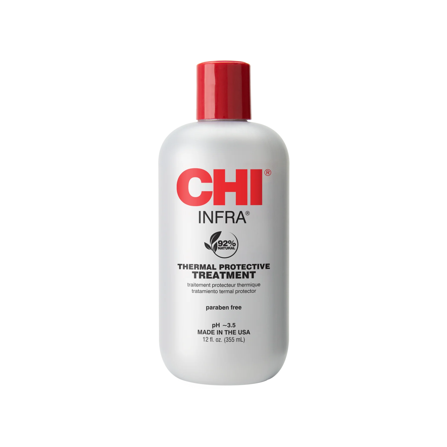After shampooing the hair, apply a generous amount of CHI Infra Treatment and work into the hair evenly. Leave on hair for 2 to 5 minutes and rinse thoroughly.