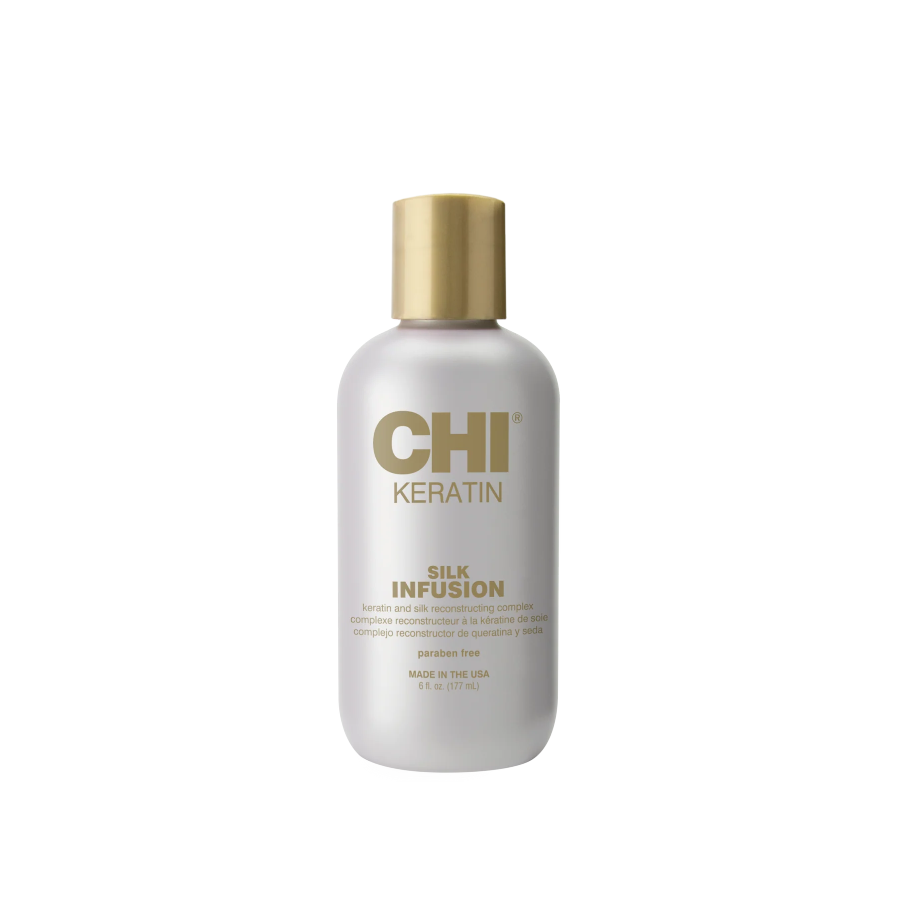 CHI Keratin Silk Infusion is a powerful reconstructing complex that heals and hydrates dry, damaged hair. This unique compound dramatically improves elasticity, preventing future breakage, while adding intense hydration that restores softness and shine.
